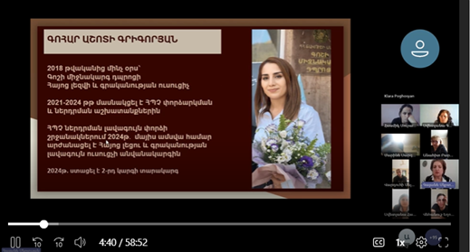 Դասընթացին ներկա 132 մասնակիցներին ներկայացվեցին վերապատրաստման նպատակը, վերջնարդյունքները, ձևաչափը, աջակից սեմինարավարների կազմը։ Չափազանց կարևոր է, որ 10-րդ դասարանում դասավանդողները կարողանան ճիշտ օգտվել առարկայական ծրագրից, թեմատիկ բաժինների տրամաբանությամբ կառուցեն իրենց դասերը, կարողանան աշխատել մեծածավալ գրական ստեղծագործությունների հետ, տեքստի հետ աշխատանքի նրբությունների մեջ խորանան։